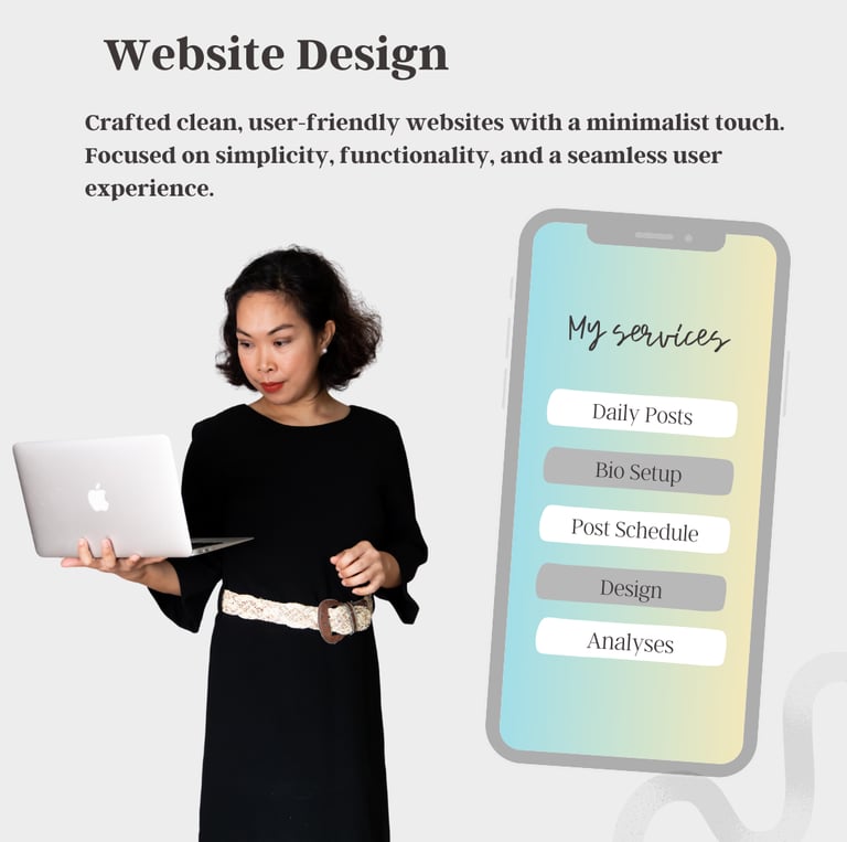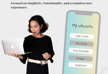We offer social media management, content creation, and website design tailored for mompreneurs.